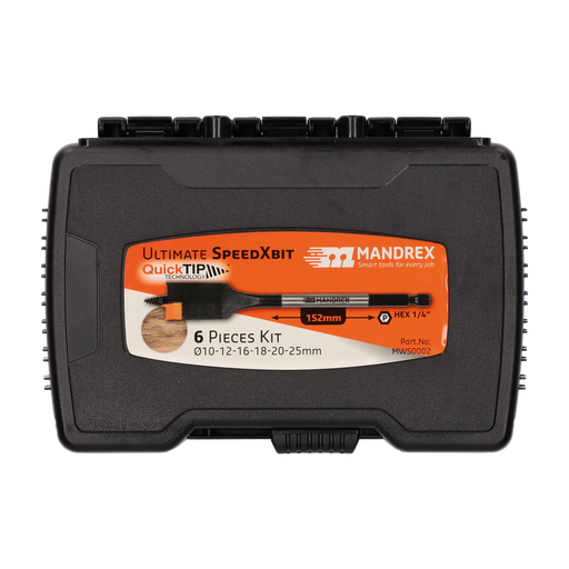 Alle gegevens bekijkenUltimate SpeedXbit Speedborenset MWS0002 10-25mm, 6-deligExtreem snel boren van gaten in vergelijking met conventionele platte spadeborenUnieke Qui...