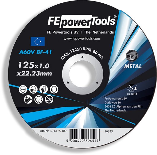 Alle gegevens bekijkenMerk: FE Powertools Type slijpschuif: Standaard Afmetingen: 125 x 1.0 x 22.23 mm Toepassing: Metaal Geschikt voor: Staal en andere metalen Max. toe...