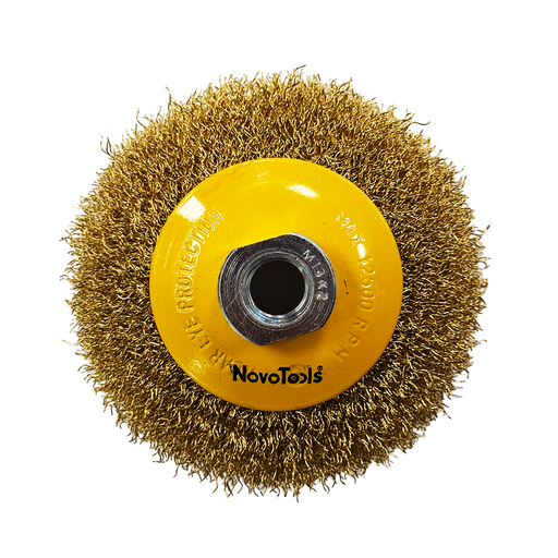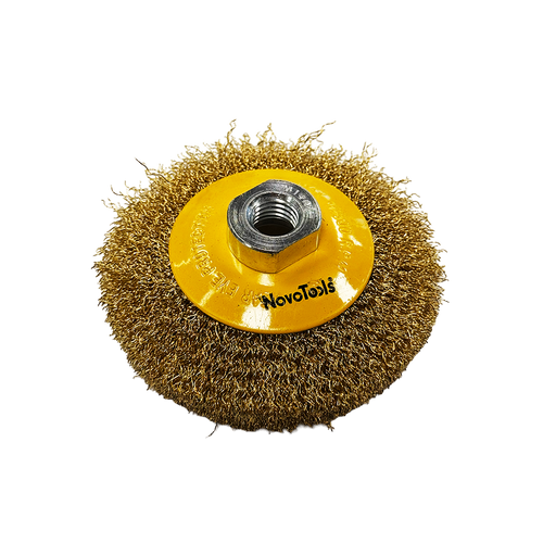 Alle gegevens bekijkenGekrompen messingdraad conische borstel Materiaal: gekrompen staal (messing) draad, diam. 0,3 mmSpindelschroefdraad: М14 ToepassingWordt vaak gebru...