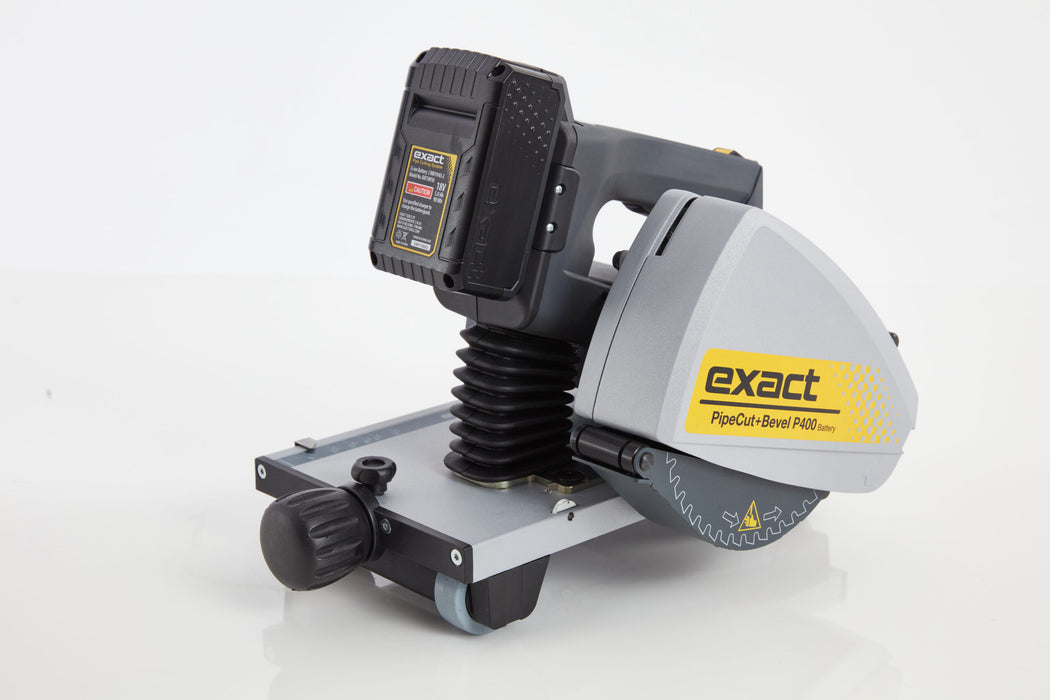 Exact P400 Battery Pijpzaagmachine – Draadloze kracht voor grote kunststof en ventilatiebuizen
