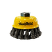 Deze metalen draadborstels met eindschijf voor haakse slijpmachines worden gebruikt voor een grondige behandeling van metalen, houten en betonnen oppervlakken, evenals voor het verwijderen van verf en roest, reinigen en polijsten.